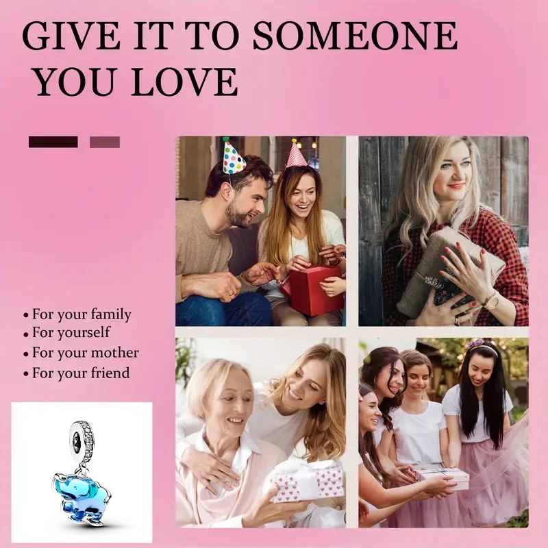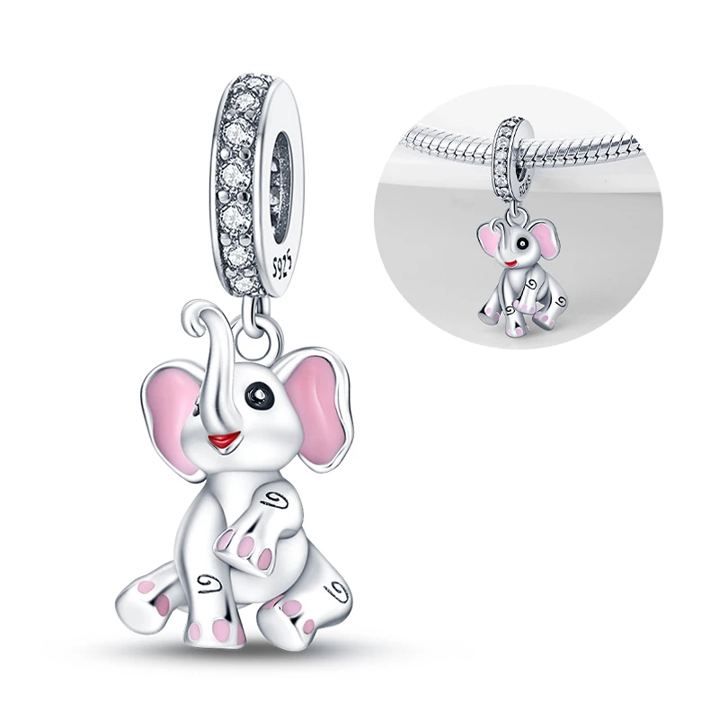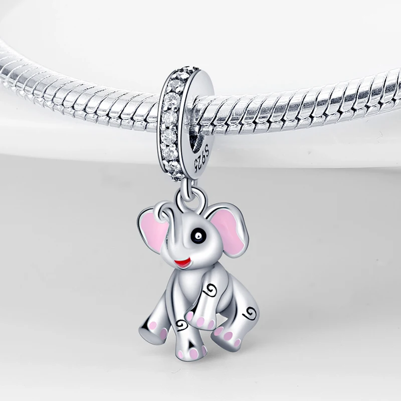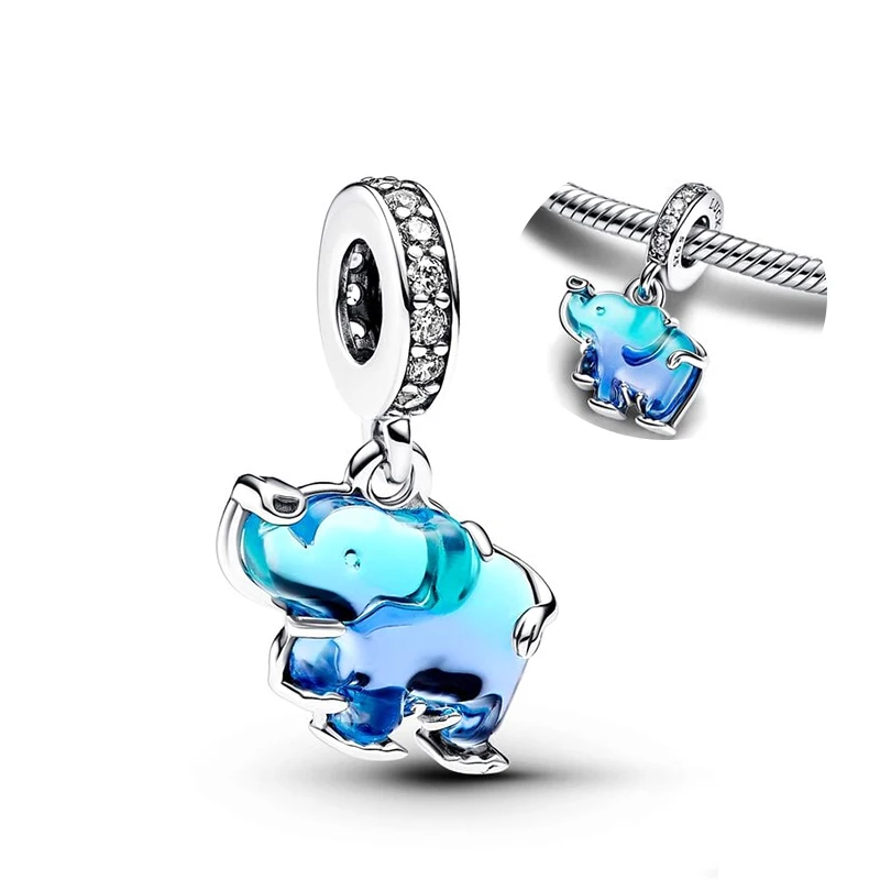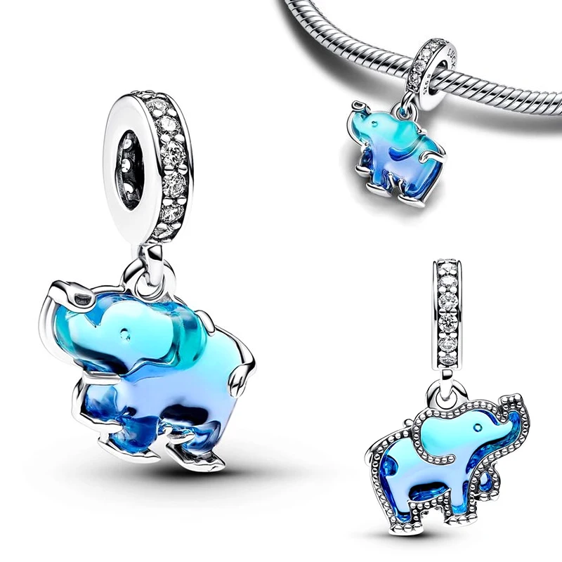 925 Silver Charms Fits Charm Pandora 925 Original Bracelet Necklace Womens Blue Elephant Dangle Charm DIY Fine Jewelry Gift Hot